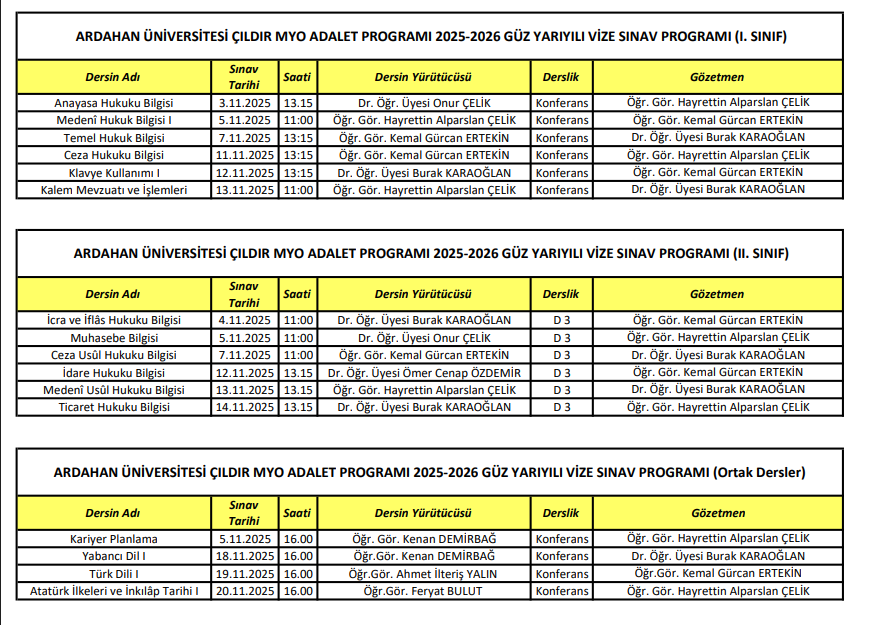 Bölüm Başkanlıkları ve Bölüm Danışmanları