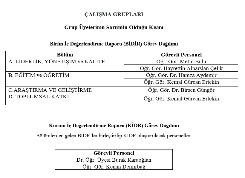 Kalite Komisyonu Çalışma Gurupları